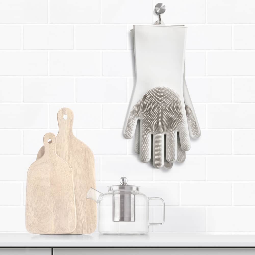 זוג כפפות סיליקון עם מברשת לשטיפת כלים/מזון